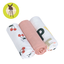 LassigLassig Bambusowa pieluszka otulacz Zestaw 3 szt. 80x80cm Happy Fruits cherry