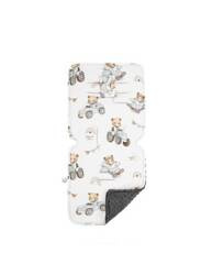 DUŻA BAMBUSOWA WKŁADKA DO WÓZKA TRAKTORY Z MINKY SMOKED PEARL 86X37 CM