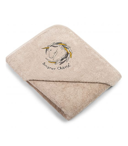 Bonjour Cherie Okrycie kąpielowe z kapturkiem 100x100 cm beżowe