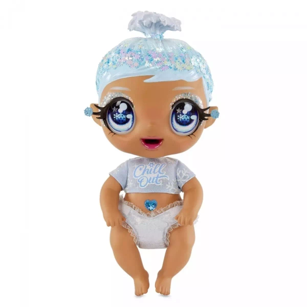 Glitter Babyz to błyszczące, magiczne bobasy, które mają duże, piękne oczy oraz błyszczące konfetti we włosach. Każdy maluch ma wyjątkową osobowość wyrażoną w jego stylu. Każda z lalek posiada 3 magiczne zmiany kolorów: włosy, butelka do karmienia i butelka szamponu. Kolor włosów zmienia się kiedy polejesz je zimną wodą z magicznej butelki szamponu, która również zmienia kolor. Dodaj wodę do butelki, aby także w magiczny sposób zmienić jej kolor.