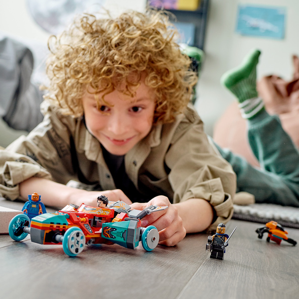 Ten ekscytujący zestaw inspirowany światem Marvel Cinematic Universe zawiera trzy minifigurki — Tony’ego Starka, Walkirię i Obserwatora — oraz mecha do zbudowania i potężny samochód. Dzieci mogą posadzić minifigurkę Tony’ego Starka w sakaariańskim Iron Manie. Ten mechaniczny olbrzym jest niezwykle ruchomy, co przydaje się konstruktorom podczas odgrywania superbohaterskich scen. A gdy dzieci najdzie ochota na wyścigi, mogą przekształcić mecha w potężny pojazd i wyruszyć na odjazdowe przygody.