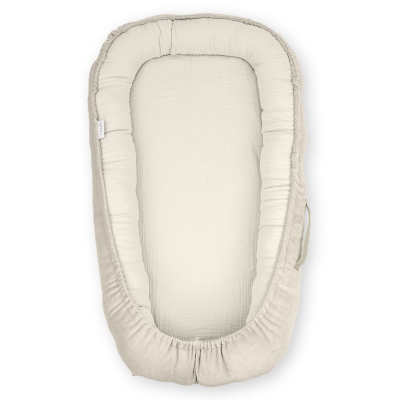 Gniazdko niemowlęce od Albero mio to idealne miejsce do snu i wypoczynku dla noworodków i niemowląt. Zapewnia dziecku poczucie bezpieczeństwa i komfortu, imitując warunki panujące w brzuchu mamy. Delikatna tkanina muślinowa wewnętrz otula maluszka, a miękki welur zewnątrz zapewnia dodatkową przytulność. Wypełnienie kokonu jest hipoalergiczne, co minimalizuje ryzyko wystąpienia alergii i podrażnień skóry dziecka.