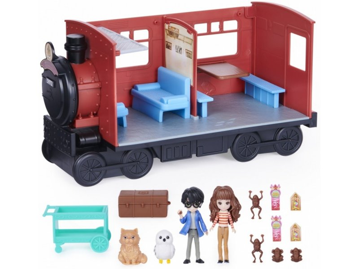 Dzięki otwartej przestrzeni przedziału możesz odgrywać swoje ulubione sceny z filmu lub wymyślać własne, czarodziejskie przygody. Pomogą Ci w tym liczne, filmowe akcesoria, takie jak kufer, wózek ze słodyczami czy magiczne słodkości.