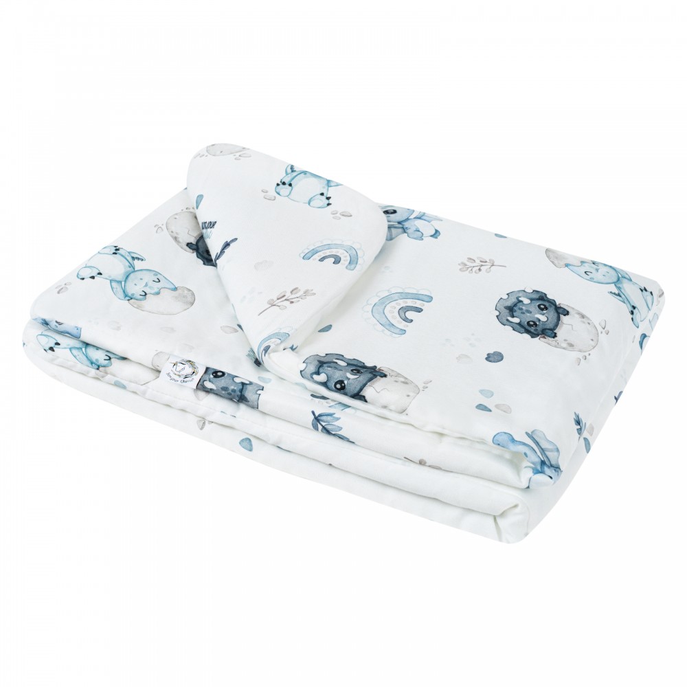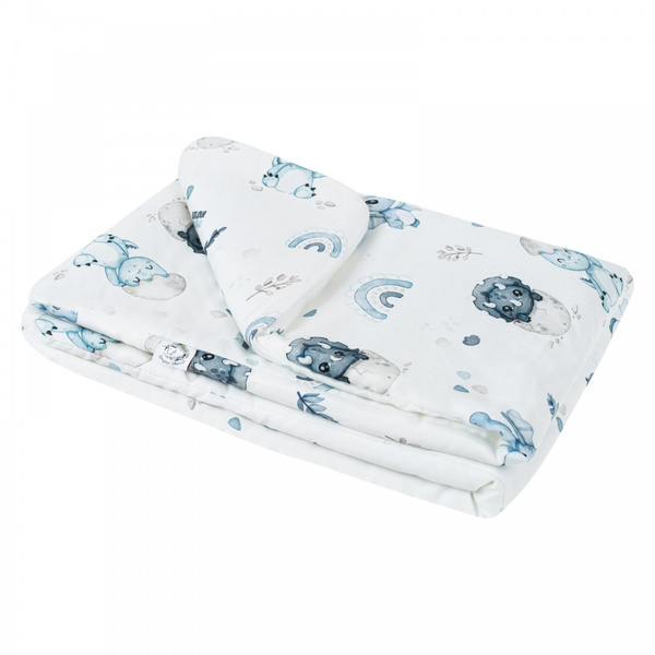 Środek kołdry wypełniony jest antyalergicznym, wysokopuszystym silikonowym polarem. Zapewnia on dziecku ciepło i komfort podczas użytkowania. Kołdra idealnie nadaje się do łóżeczka, na popołudniową drzemkę w pokoju dziecięcym, a także jako ulubiona kołdra na każdą podróż lub jako miękka mata dla dziecka, a ze względu na swój rozmiar również jako narzuta na łóżko.