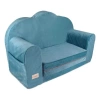 Miękka i wygodna sofka z kolekcji Velvet Kids dla starszych – umiejących samodzielnie siedzieć dzieci. To nie tylko piękny mebelek, ale przede wszystkim – wygodne siedzisko lub legowisko podczas drzemki i zabawy dziecka Wypełnienie sofki to mięciutka pianka poliuretanowa - lekka, ale stabilna. Velvetowe obszycie wykonane jest w formie zdejmowanego pokrowca, dzięki czemu łatwo utrzymać je w czystości. Doszyte z dwóch stron boczne kieszonki doskonale sprawdzą się jako schowek na zabawki czy książeczki. Oparcie sofki dekoracyjnie wyprofilowane na kształt chmurki Sofka jest bezpieczna dla maluszków, nie posiada twardych krawędzi i wystających elementów. Doskonale sprawdzi się jako mebel w pokoiku dziecka, używany zarówno do zabawy, jak i odpoczynku. Jest łatwa do rozłożenia oraz lekka – dziecko samo przesunie ją w dowolne miejsce. To inwestycja na lata – pianka nie odkształca się, a rozmiar jest idealnie dopasowany również dla starszych dzieci Wszystkie użyte do produkcji sofki materiały są atestowane i całkowicie bezpieczne dla dziecka