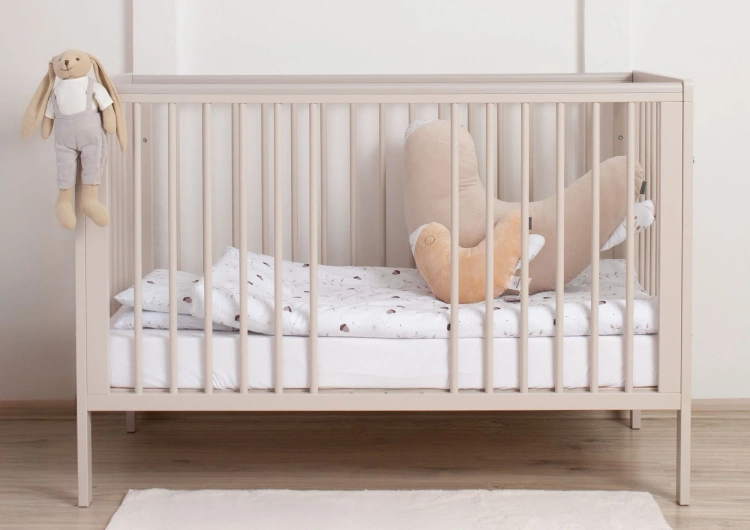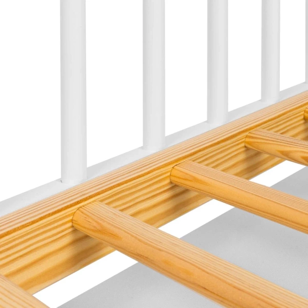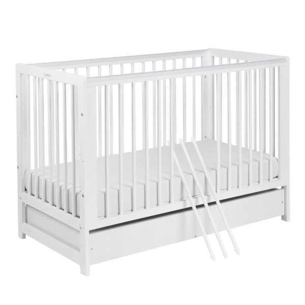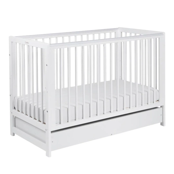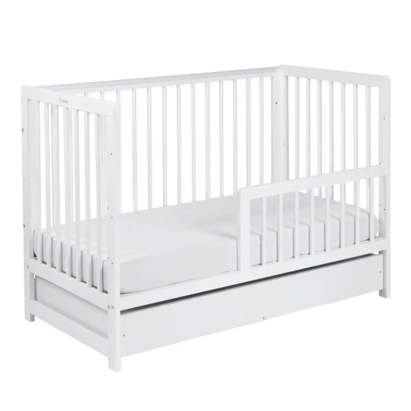 Yoonco Łóżeczko drewniane z szufladą i barierką TIMIO białe