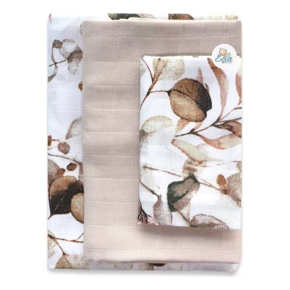 W skład zestawu wchodzą 3 pieluszki muślinowe: