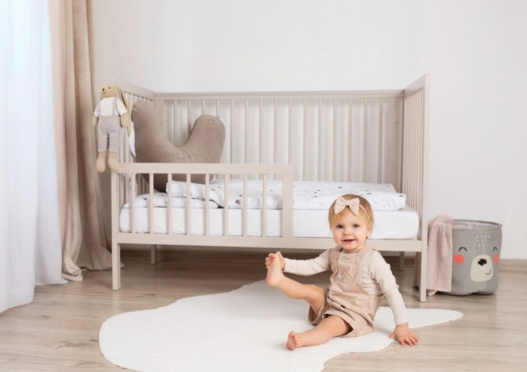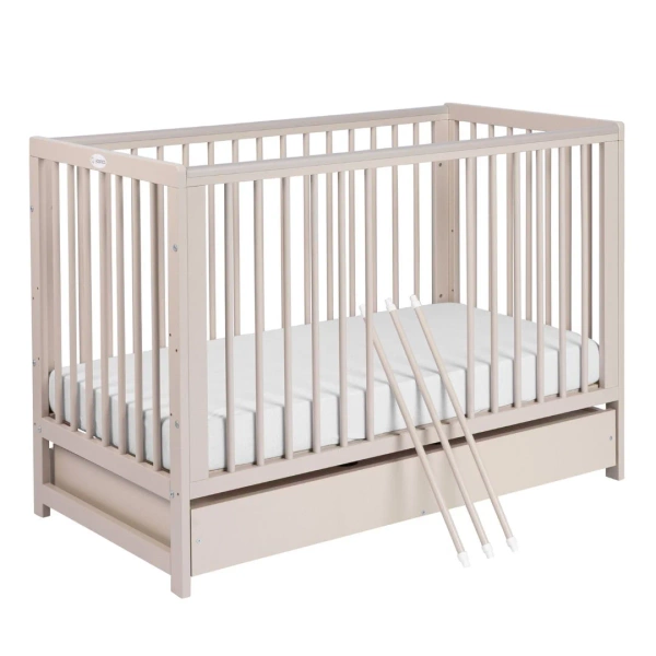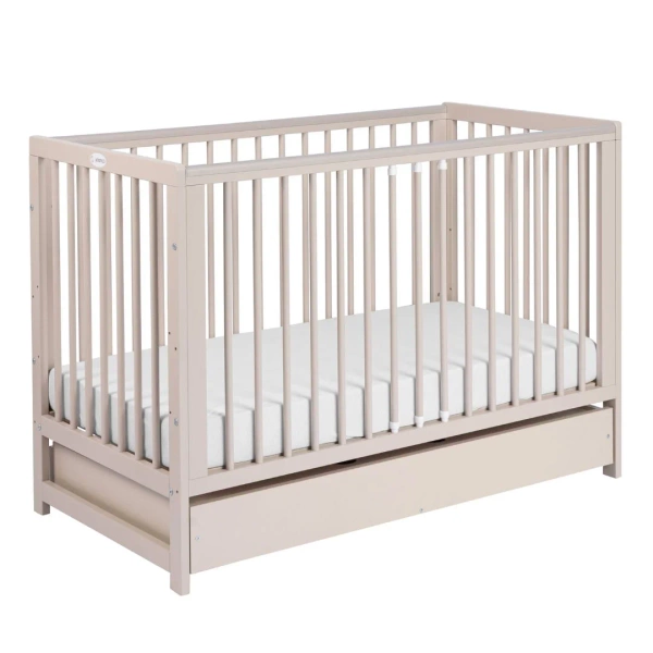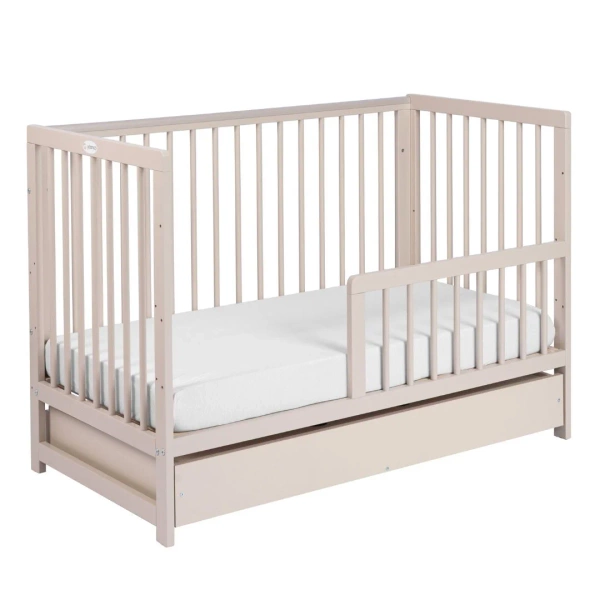 Yoonco Łóżeczko drewniane z szufladą i barierką TIMIO beż
