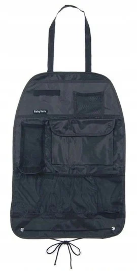 Produkt został wykonany z łatwego do czyszczenia materiału, pasuje on do każdego fotelu z zagłówkiem, jest prosty w montażu i posiada mnóstwo funkcjonalnych kieszonek i przegródek na misie, dinozaury, kredki, mazaki, kolorowanki, bajki, puzzle, klocki i cokolwiek, co jest niezbędne do udanej podróży samochodem.