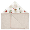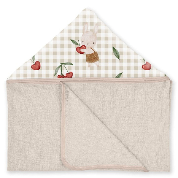 Ręcznik posiada kapturek, który można założyć na głowę dziecka, zapewniając mu ciepło i komfort podczas schnięcia.