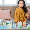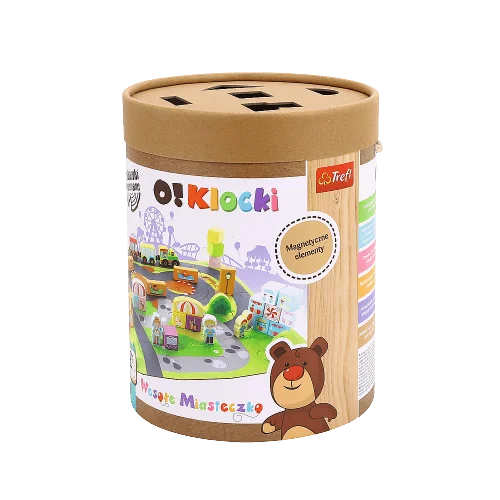 Drewniane klocki wspierają rozwój kreatywności, a figurki zachęcają do odgrywania ról.