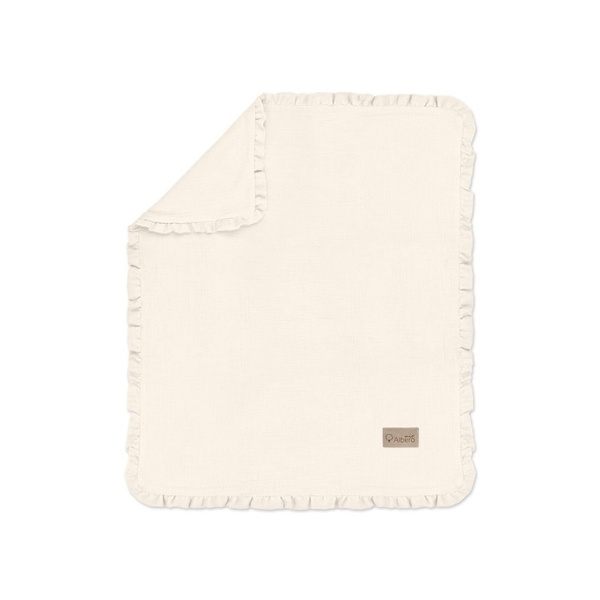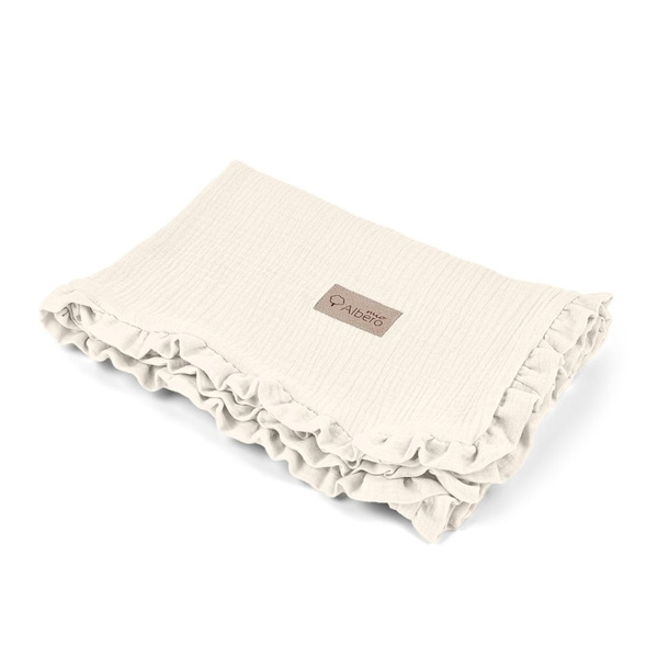 Kocyk z falbanką wykonany w 100% z bawełnianego muślinu, znanego jako double gauze. Kocyk ten zapewnia miękkość oraz przewiewność, co jest kluczowe dla delikatnej skóry niemowląt.