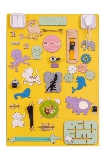 Tablica kolorowa rozkładana - jedna strona manipulacyjna, druga strona kredowa Wyposażenie strony manipulacyjnej: