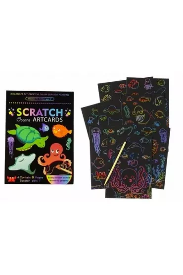 Ten zestaw to idealny sposób, aby zapewnić Twojemu dziecku nie tylko rozrywkę, ale także możliwość twórczego wyrażania się. W zestawie znajdziesz 9 obrazków do zdrapywania, które ożywiają się przed oczami dziecka. Zabawa jest prosta: używając specjalnego drewnianego patyczka, można zdrapywać czarną warstwę na obrazku, odkrywając piękne i kolorowe ilustracje. Te ilustracje przedstawiają różne sceny z kosmosu. Wymiary każdego obrazka to 13,5 cm x 18,5 cm, co czyni je idealnymi do trzymania w małych rączkach. Dodatkowo, drewniany patyczek do zdrapywania ma długość 14 cm, co ułatwia manipulowanie nim podczas zabawy.