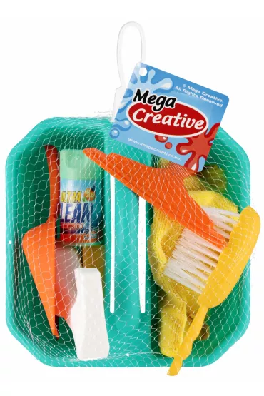 Zalety produktu rozwija wyobraźnię dziecka, ćwiczy precyzję ruchową, uczy naśladowania czynności wykonywanych przez dorosłych, uczy dbania o porządek. Zestaw do sprzątania, który nauczy dzieci dbania o porządek, świetnie się przy tym bawiąc. Zawartość zestawu szufelka, zmiotka, 1 butelki z płynem do sprzątania, spray do czyszczenia, gąbeczka do sprzątania, ściągaczka do mycia szyb, ściereczka do kurzu.