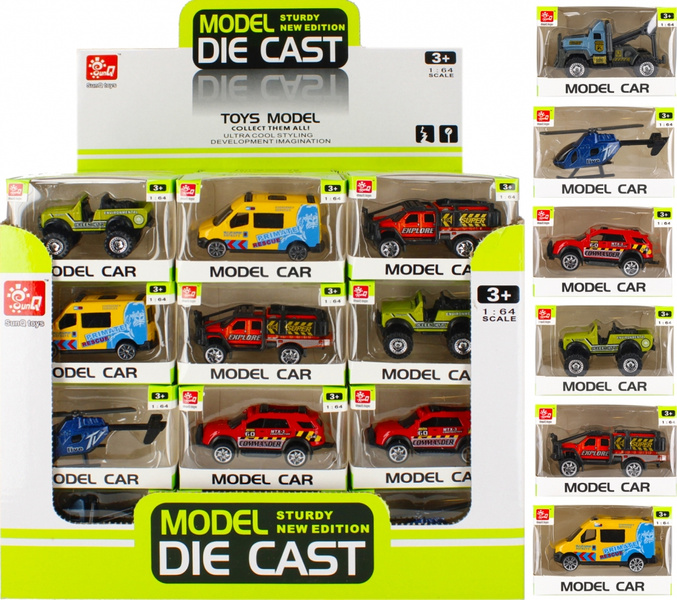 Zalety produktu pojazd wykonany z metalu, starannie i estetycznie , kolorowa karoseria, występuje w miksie wzorów i kolorów. Metalowy model pojazdów w skalo 1 64 jest bardzo starannie i estetycznie wykonany, kolorowa karoseria zapewne zachwyci każdego małego fana 4 kółek Zawartość zestawu pojazd metalowy. Wymiary/waga/baterie wymiary produktu dł. x wys. x gł. cm 7x4x4, wymiary opakowania dł. x wys. gł. cm 10x6x5, wymiary DISPLAY dł. x wys. x gł. cm 29x25x20, waga produktu bez opakowania kg 0,02 kg, waga produktu w opakowaniu kg 0,04 kg, waga DISPLAYA kg 1,88 kg, nie wymaga zasilania bateriami. Zabawka przeznaczona dla dzieci w wieku 3 . Pakowana w kartonik z okienkiem. Dodatkowo pakowane w display po 48 szt, w kartonie zbiorczym po 576 szt.