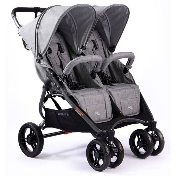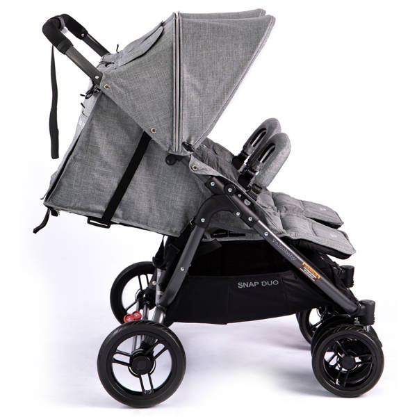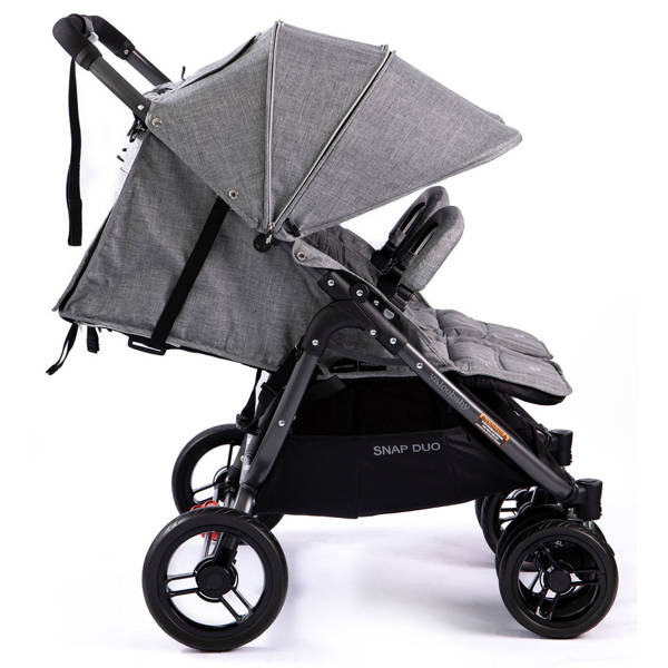 Valco Snap Duo jest bardzo zwinny dzięki swym niezawodnym kółkom, przednie skrętne zapewniają lepsze manewrowanie po płaskich podłożach. Można je zablokować do jazdy na wprost, by łatwiej było jeździć po wyboistych terenach. Opcja wypięcia przednich kół powoduje, że po złożeniu wózek zajmuje jeszcze mniej miejsca
