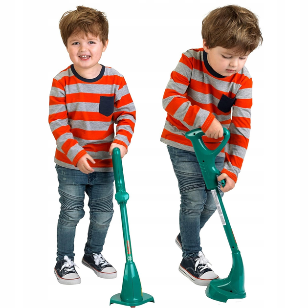 Podkaszarka Bosch. Podkaszarka wydająca dźwięki (terkocze podczas przesuwania po podłożu), która zainteresuje każdego małego ogrodnika. Jest to odzwierciedlenie prawdziwej podkaszarki. Seria narzędzi ogrodowych na licencji Bosch wyglądem przypomina najprawdziwsze sprzęty, którymi posługują się dorośli. Dlaczego dzieci nie miałyby brać czynnego udziału w pracach na świeżym powietrzu? Dzięki kosiarce, taczce, łopacie czy wykaszarce mogą bez trudu zamienić się w prawdziwych ogrodników. Wszystkie narzędzia wykonane są bardzo solidnie w związku z czym, można za ich pomocą wykonywać prawdziwe, lekkie prace ogrodowe. Podkaszarka ogrodowa Bosch Klein pomoże małemu ogrodnikowi skosić trawę, naśladując dorosłego. Dzięki podkaszarce ogrodowej Bosch dzieci będą spędzać więcej czasu na zabawie na świeżym powietrzu. Trymer posiada efekt dźwiękowy podobny do prawdziwego dźwięku trymera. Trymer nie posiada ostrych narożników i jest bezpieczny dla dzieci powyżej trzeciego roku życia.