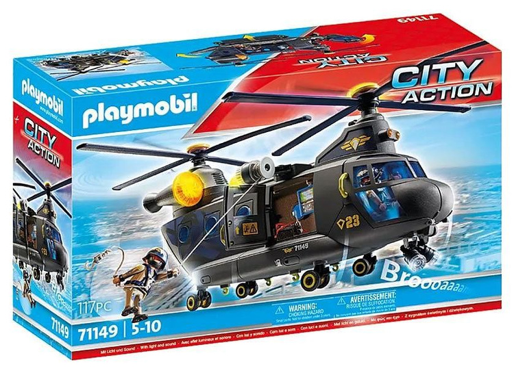 Śmigłowiec ratunkowy jednostki specjalnej z funkcją światła i dźwięku zachęca dzieci od pięciu lat do odgrywania ekscytujących misji policyjnych. Zestaw zawiera dwie figurki Playmobil w pełnym umundurowaniu i fajny sprzęt, który przyda się podczas wymagających akcji.