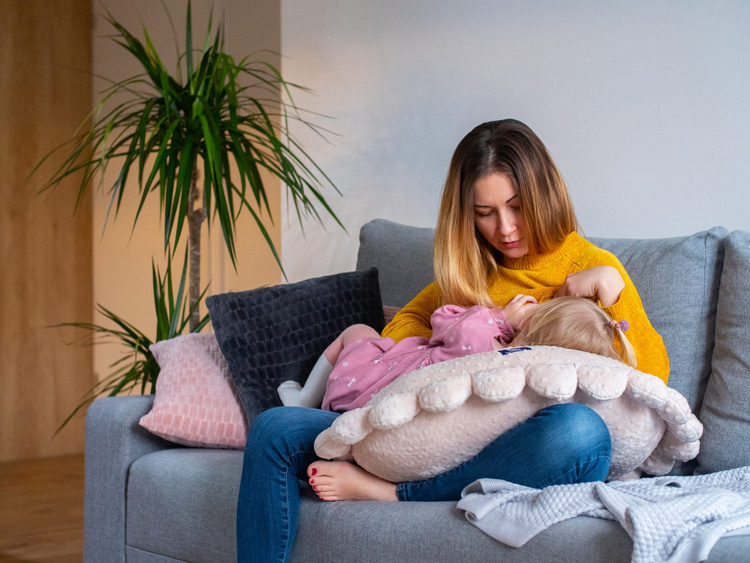 Poduszka Pan Pieróg™ została zaprojektowana od podstaw z myślą o odciążeniu zmęczonych rąk karmiącej matki.