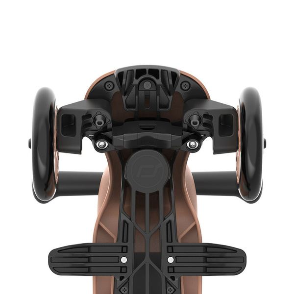 Bez używania narzędzi, za pomocą jednego guzika można w kilka sekund zamienić pojazd w hulajnogę na 3 kołach – obrócone siedzisko staje się jej przednią ramą. Wystarczy jeszcze przenieść kierownicę (montowana na klik) i gotowe! Teraz także starszak może rozpocząć swoją scaterską przygodę.