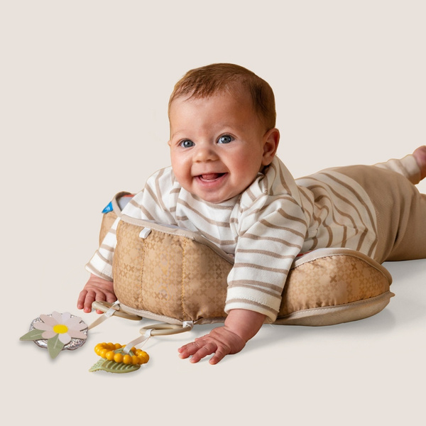 Dzięki ergonomicznemu kształtowi, poduszka delikatnie unosi klatkę piersiową dziecka, wspierając unoszenie główki oraz rozwój mięśni szyi, pleców i ramion. To doskonałe przygotowanie do przyszłych kamieni milowych, takich jak siadanie czy raczkowanie.