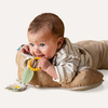 Dołączone zabawki sensoryczne – miękka grzechotka i gryzak – dodatkowo stymulują zmysły, zachęcając maluszka do sięgania i aktywnej zabawy.