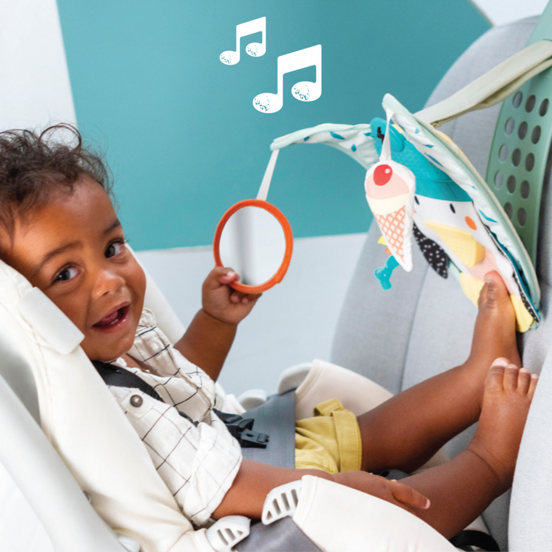 Kojące melodie (10 minut) i melodia na czas (3 minuty) pomagają w uspokojeniu malucha podczas podróży 💤.
