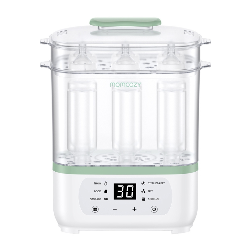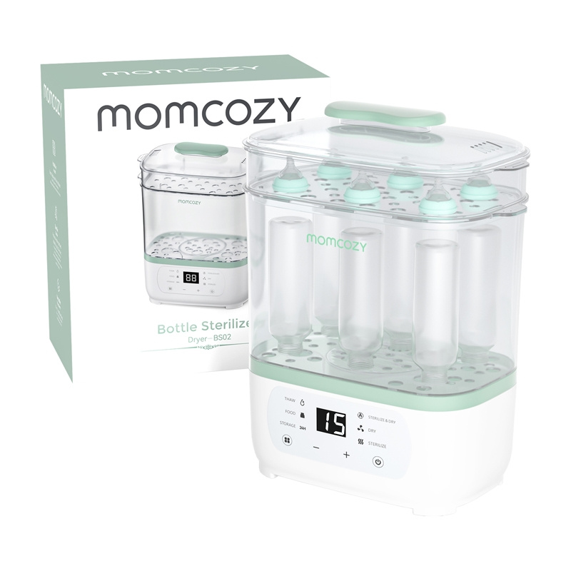 Sterylizator i suszarka do butelek Momcozy BS002-WH12NB-A to wszechstronne urządzenie 3w1, które pozwala w bezpieczny i wygodny sposób zadbać o akcesoria niemowlęce. Łączy w sobie funkcje sterylizacji parą, suszenia oraz przechowywania w sterylnych warunkach nawet przez 24 godziny. Dzięki dużej pojemności i trójwarstwowej konstrukcji pomieści aż do 6 butelek wraz z dodatkowymi elementami, takimi jak smoczki czy łyżeczki. Intuicyjny panel dotykowy i szybkość działania to ogromne ułatwienie w codziennym życiu rodzica, zwłaszcza przy noworodku.