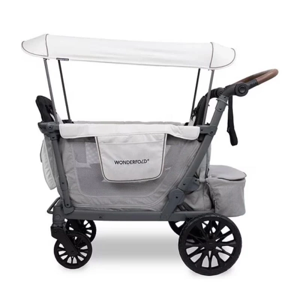 Pojemność dla dziecka: Wystarczająco dużo miejsca, aby zmieścić dwójkę małych poszukiwaczy przygód, Składanie i rozkładanie: Prosty mechanizm umożliwiający szybkie rozkładanie i pakowanie, Przechowywanie w pozycji pionowej: Unikalna konstrukcja pozwala na złożenie wózka i ustawienie go w pozycji pionowej z podpórką, Płynna jazda: Przednie koła obracające się o 360° z możliwością blokowania zapewniają płynne poruszanie się po różnych nawierzchniach, Zdejmowane ławki: Użyj jednej lub obu w zależności od potrzeb, albo zdejmij obie, aby przekształcić wózek w wózek użytkowy, Drzwi boczne: Wygodne wsiadanie i wysiadanie, które może służyć również jako ławka, Zaprojektowane z myślą o bezpieczeństwie: 5-punktowe pasy bezpieczeństwa zapewniające bezpieczną jazdę oraz hamulec nożny uruchamiany jednym ruchem, Łatwe prowadzenie: Regulowana kierownica z pokryciem ze sztucznej skóry i paskiem na nadgarstek dla większego bezpieczeństwa.