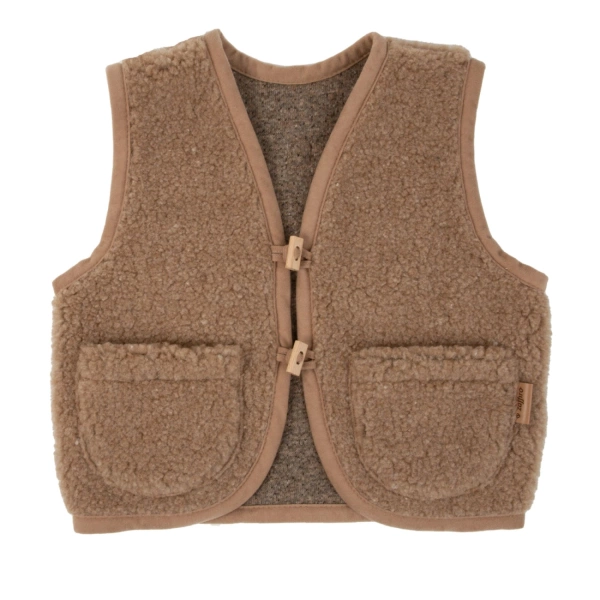 Klasyczny krój i zapinanie na drewniane guziczki dodają kamizelce uroku w stylu vintage i sprawiają, że łatwo się ją zakłada i zdejmuje – nawet w biegu! Dzięki szerokiej rozmiarówce – kamizelka rośnie razem z dzieckiem, towarzysząc mu przez kilka sezonów.