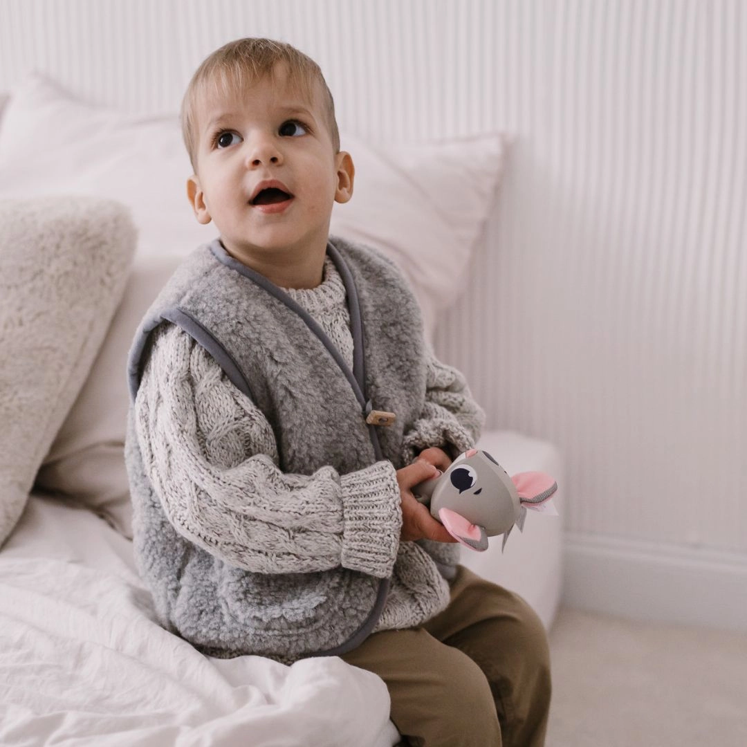 Klasyczny krój i zapinanie na drewniane guziczki dodają kamizelce uroku w stylu vintage i sprawiają, że łatwo się ją zakłada i zdejmuje – nawet w biegu! Dzięki szerokiej rozmiarówce – kamizelka rośnie razem z dzieckiem, towarzysząc mu przez kilka sezonów.