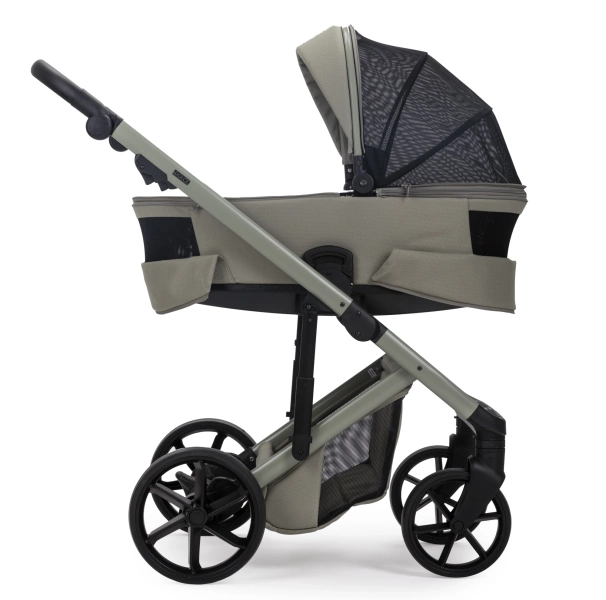 Kolekcja wyróżnia się precyzyjnie dobranym kolorem stelaża oraz dodatków, które idealnie współgrają z tkaniną zastosowaną w wózku. Subtelne, stonowane i eleganckie zestawienia kolorystyczne nawiązują do naturalnych odcieni ziemi i przyrody wokół nas.
