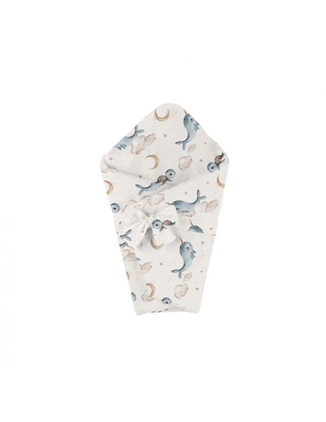 Waldin Kołdra bambusowa dziecięca + wstęga do rożka 75x75 Wieloryb krem