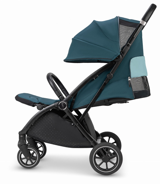 Prowadzenie wózka jest bardzo przyjemne dla rodzica, ponieważ wózek jest lekki i zwrotny. Rama aluminiowa, malowana proszkowo w kolorze czarnym. Po zakończonym spacerze wózek automatycznie złożysz jedną ręką.