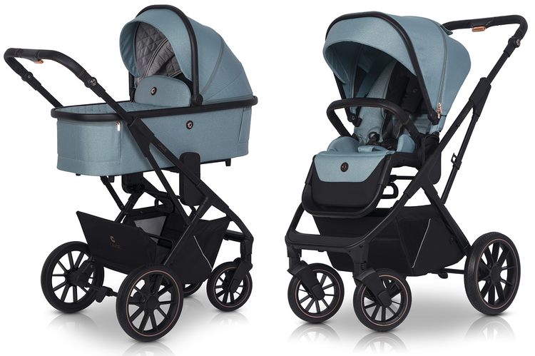 Wózek dziecięcy AXO SHINE dostępny jest w 4 modnych wersjach kolorystycznych: CHAMPAGNE (złoty beż), FLAMINGO (dyskretny łososiowy róż), BOHO GREEN (ceramiczna zieleń) oraz FRENCH GREY (odcienie szarości). Dyskretnie połyskujące tkaniny doskonale komponują się z czarnymi matowymi stelażami wózków AXO. Całość uzupełniają modne dodatki w kolorze ROSE GOLD.