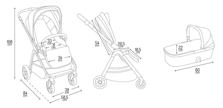 MoMi GISELLE 2w1 to połączenie gondoli oraz wózka spacerowego. Dzięki tej funkcjonalności wózek rośnie wraz z Dzieckiem. MoMi GISELLE 2w1 wyposażony jest też w zestaw akcesoriów, takich jak: torba, materacyk, osłona przeciwsłoneczna mocowana na magnes, osłonka na gondolę, osłonka na nóżki, folia przeciwdeszczowa, moskitiera, uchwyt na kubek i telefon.