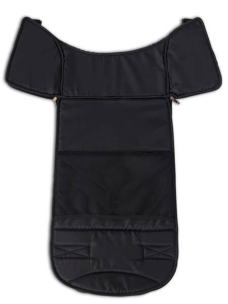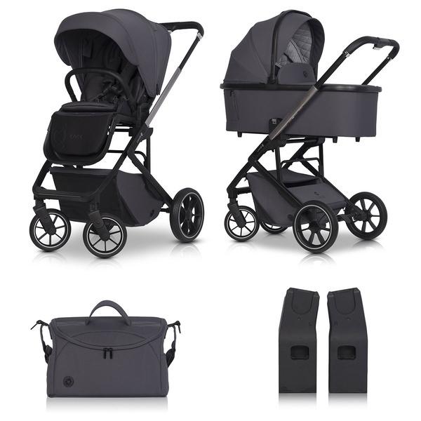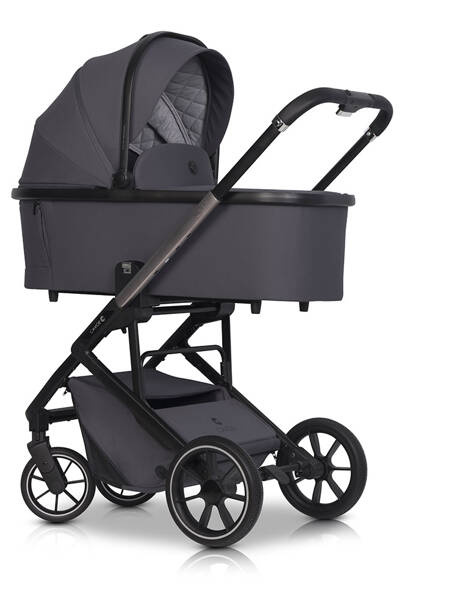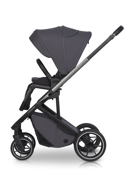 Duży koszyk na zakupy pomieści niezbędne bagaże, ale jeśli potrzebujesz dodatkowej przestrzeni, to możesz dokupić praktyczną torbę zawieszaną na prowadnicy wózka. Posiada ona formę eleganckiego kuferka, który po całkowitym rozsunięciu wszystkich suwaków, zmienia się w matę do przewijania dziecka.