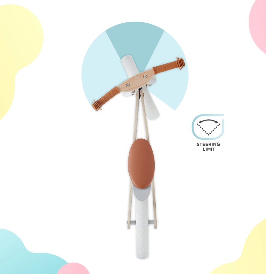 Blokada skrętu kierownicy pomaga Maluchowi panować nad rowerkiem.
