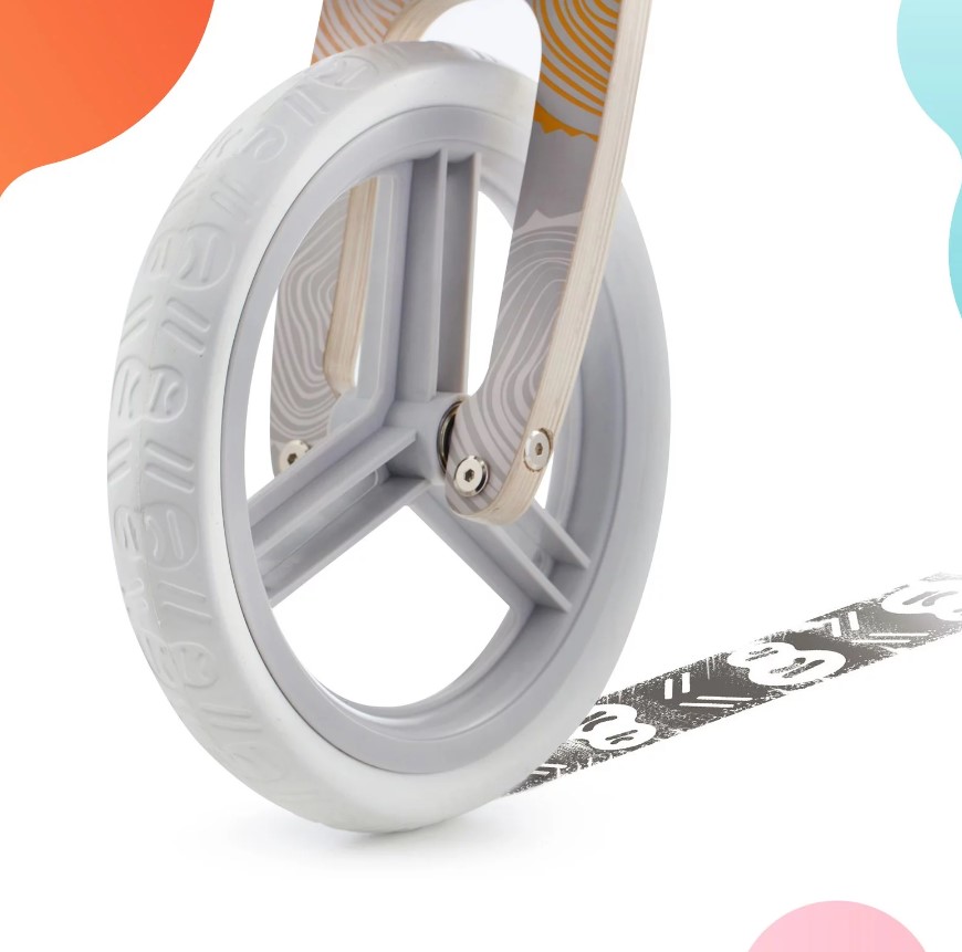 Wytrzymałe, łożyskowane koła z pianki EVA posiadają bieżnik, pozostawiający po sobie ślad.