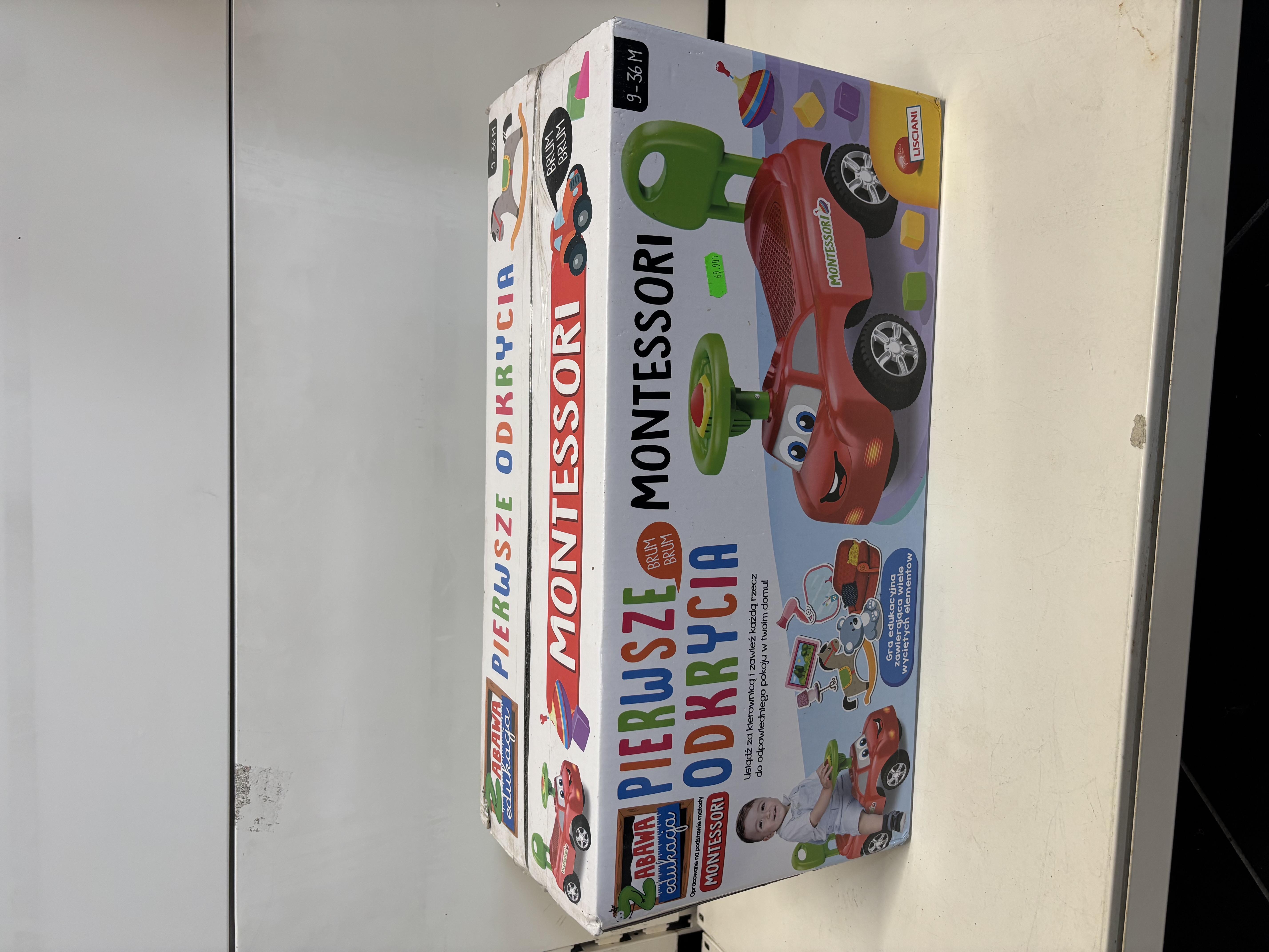 Gra Pierwsze Odkrycia to tradycyjna gra z samochodzikiem opracowana tak, by rozwijać aktywności będące podstawą metody Montessori.