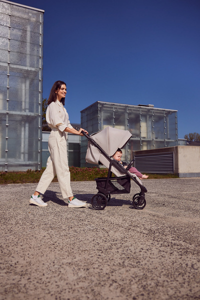 Wózek spacerowy Euro-cart Flex posiada regulowaną rączkę, dzięki czemu możesz dopasować jej ustawienie do swojego wzrostu i preferencji. Oboje możecie równie wygodnie zabrać maluszka na spacer niezależnie od dzielących was centymetrów.