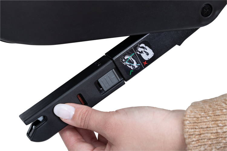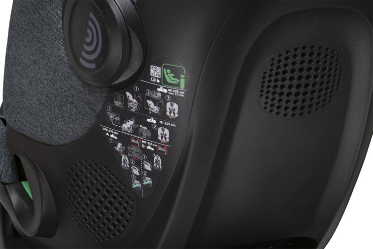 Instalacja fotela jest niezwykle łatwa i bezpieczna na każdym etapie: tyłem i przodem do kierunku jazdy mocowanie produktu odbywa się przy użyciu bazy Full 360 i-Size z ramą anty rotacyjną i nogą stabilizującą (łączniki isofix bazy i noga stabilizująca wyposażone są w mechaniczny system kontroli prawidłowego montażu).