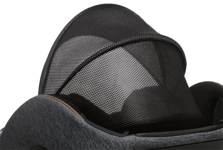 Kanały wentylacyjne umieszone zostały w obudowie fotelika: na siedzisku oraz bokach fotelika a także ażurowa podstawa - zakończone specjalną siatką kanałową 3D Air Technology.