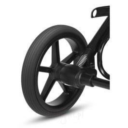 Duże, gumowe koła typu All Terrain gwarantują naprawdę komfortową jazdę w każdych warunkach. W stelażu wózka, tuż przy kołach umieszczono sprężyny amortyzacyjne, które mają na celu zapewnić jeszcze przyjemniejszą jazdę zarówno rodzicowi, jak i dziecku.