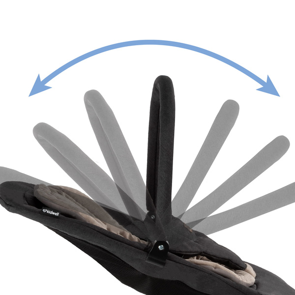 Kidwell Rubi wyposażono w regulowany pałąk z dwiema uroczymi miękkimi zabawkami. Możesz ustawić go tak, aby maluch swobodnie sięgał po zabawki, podziwiał je z bliska albo by były poza zasięgiem wzroku – w zależności od nastroju i potrzeb.