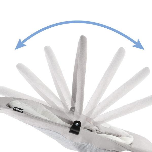 Kidwell Rubi wyposażono w regulowany pałąk z dwiema uroczymi miękkimi zabawkami. Możesz ustawić go tak, aby maluch swobodnie sięgał po zabawki, podziwiał je z bliska albo by były poza zasięgiem wzroku – w zależności od nastroju i potrzeb.