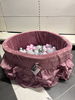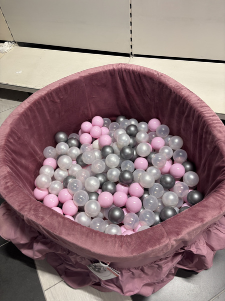 Stylowy i miękki suchy basen marki Bobono o średnicy 90 cm, idealny do zabawy dla najmłodszych. Basen pokryty jest przyjemnym w dotyku materiałem w kolorze pudrowego różu, ozdobiony elegancką falbaną. W zestawie znajdują się kolorowe piłeczki w odcieniach różu, bieli, szarości i przezroczystego plastiku. Produkt doskonale sprawdzi się w pokoju dziecięcym, zapewniając bezpieczną i kreatywną zabawę.