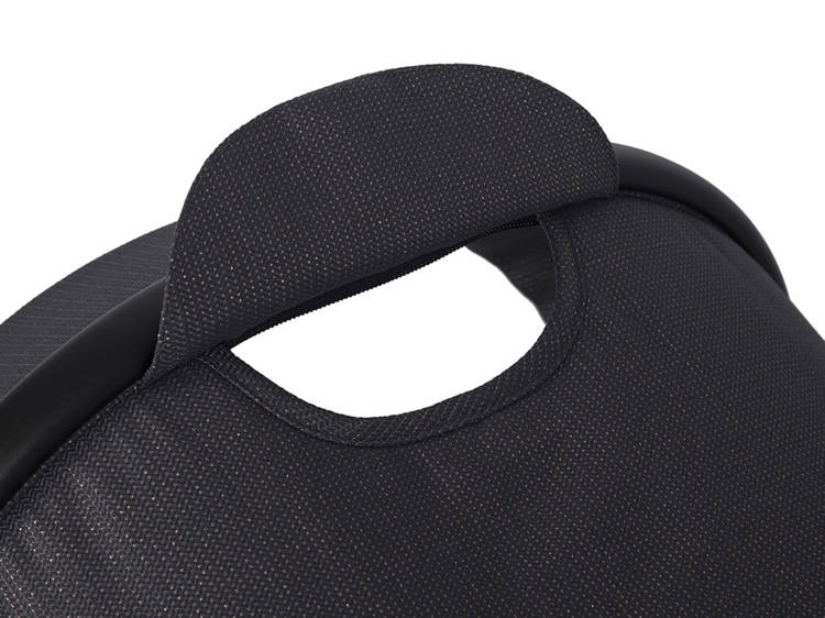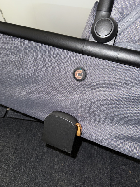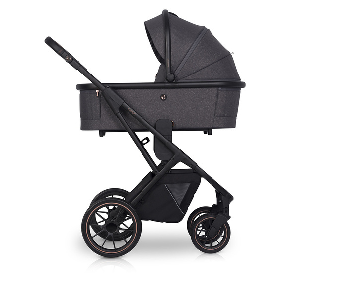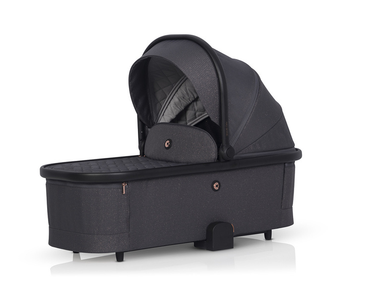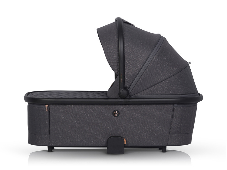 Dodatkową funkcją wysokiej gondoli do wózka AXO SHINE są przyciski z pamięcią (tzw. memory buttons), które pozwalają na wypięcie gondoli ze stelaża przy użyciu jednej ręki. Wystarczy, że wciśniesz estetyczne miedziane przyciski po obu stronach gondoli i uniesiesz gondolę, trzymając za wygodny uchwyt w budce.