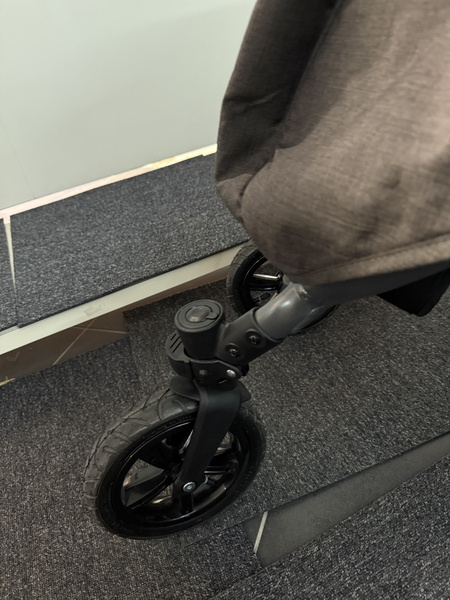 Pompowane koła zapewniają naprawdę komfortową jazdę w każdych warunkach. Możliwość blokady przedniego koła obrotowego sprawia, że wózek stabilniej prowadzi się po nierównych nawierzchniach.